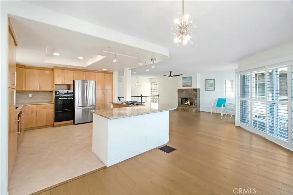 Welcome home to this stunning townhome in the highly sought-after Vista Del Oro neighborhood of San Pedro, offering breathtaking views of the Vincent Thomas Bridge and the bustling port! The upper level greets you with a spacious living room complete with a cozy fireplace, seamlessly connecting to the dining area and a beautifully remodeled kitchen. The kitchen is a chefs dream, featuring modern appliances, including a stainless-steel refrigerator, double oven, dishwasher, and cooktop. Striking granite countertops, wood cabinetry, ample cupboard space, and an expansive breakfast bar enhance both its aesthetics and functionality. This level also includes a bedroom, a bathroom with a shower, a convenient laundry area, and sliding glass doors that lead to a large private balcony, perfect for enjoying the stunning bridge and port views. Downstairs, youll find an additional bedroom with a full bathroom, and the primary suite, which boasts its own remodeled ensuite bathroom, generous closet space, and a private patio adorned with beautiful palm trees and bistro lighting. Additional features include hardwood and vinyl flooring, an attached two-car garage, and three mini-split units for customized heating and air conditioning. Conveniently located near downtown San Pedro, you'll enjoy easy access to a variety of restaurants, shopping, and vibrant nightlife. Nearby attractions include Crafted at the Port of Los Angeles, Brouwerij West Brewery, the new Port Town Brewery, and the iconic Korean Bell at Angels Gate Park. Invest in San Pedro now before the exciting new waterfront West Ha