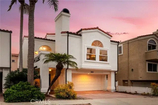 Welcome to this charming home featuring Spanish accents, perfectly situated just steps from the greenbelt in beautiful Hermosa Beach. This rare single family home in the Hermosa Valley section boasts 3 bedrooms plus an office or 4th bedroom, 2.5 bathrooms with 2,376 sqft of living space. A lush landscape greets you as you approach the entryway, where Saltillo tile flooring adds a touch of Spanish charm to this coastal residence. The family friendly floor plan has 2 bedrooms on the first level as well as a full bathroom, laundry area and direct garage access. Sliding doors from one of the bedrooms opens to the quaint, low maintenance backyard. Proceed upstairs to find the bright and airy living room with vaulted ceilings and a brick fireplace, which flows into the dining room and kitchen, creating a wonderful great-room style living space. The kitchen has been tastefully updated with quartz countertops, wood cabinetry and stainless-steel appliances. French doors open to a spacious deck perfect for entertaining. The spacious primary suite is topped with vaulted ceilings, a fireplace and an en-suite bath featuring a glass-enclosed large shower, separate soaking tub and dual vanities. Also on this floor is the office or 4th bedroom and powder room. Ascend up the stairs to find a spacious loft with French doors opening to a large deck perfect to watch the sunsets. Additional features include new exterior paint and interior paint, refinished hardwood floors and newer windows. There is direct access to the oversized 2 car garage with a new apoxy floor plus additional 2 car parking