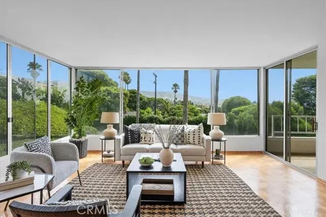 Discover your serene coastal escape in the coveted Palos Verdes Bay Cluba residence that redefines luxurious, one-level living. This end-unit condo is a perfect blend of comfort, style, and tranquility, offering glimpses of the ocean and Catalina Island. Step into a bright, airy living space, where large windows flood the room with natural light and showcase the lush hills of Palos Verdes. The open-concept design seamlessly connects the living room, dining area, and kitchen, creating an ideal space for both relaxation and entertaining. The kitchen is a delight for any culinary enthusiast, featuring freshly painted walls, sleek stainless-steel appliances, granite countertops, and ample cabinetry. The condo offers two expansive bedrooms, each designed with relaxation in mind. The rooms boast plush carpeting, generous closets, and plenty of space to unwind. The primary suite is a luxurious retreat, complete with an en-suite bathroom featuring dual vanities, a soaking tub with a shower, and an in-unit laundry area. Both bedrooms have direct access to a balcony, where you can enjoy the ocean breeze and partial ocean views, creating a private sanctuary. Beyond the comfort of your home, this community offers a variety of resort-style amenities. Take the elevator down to the stunning pool area, where you can lounge by the water while gazing at the sweeping ocean views. For those who enjoy staying active, two tennis courts, shuffleboard, and a fully equipped fitness center are just steps away. Lush green spaces invite you to enjoy picnics or outdoor gatherings, while scenic walking