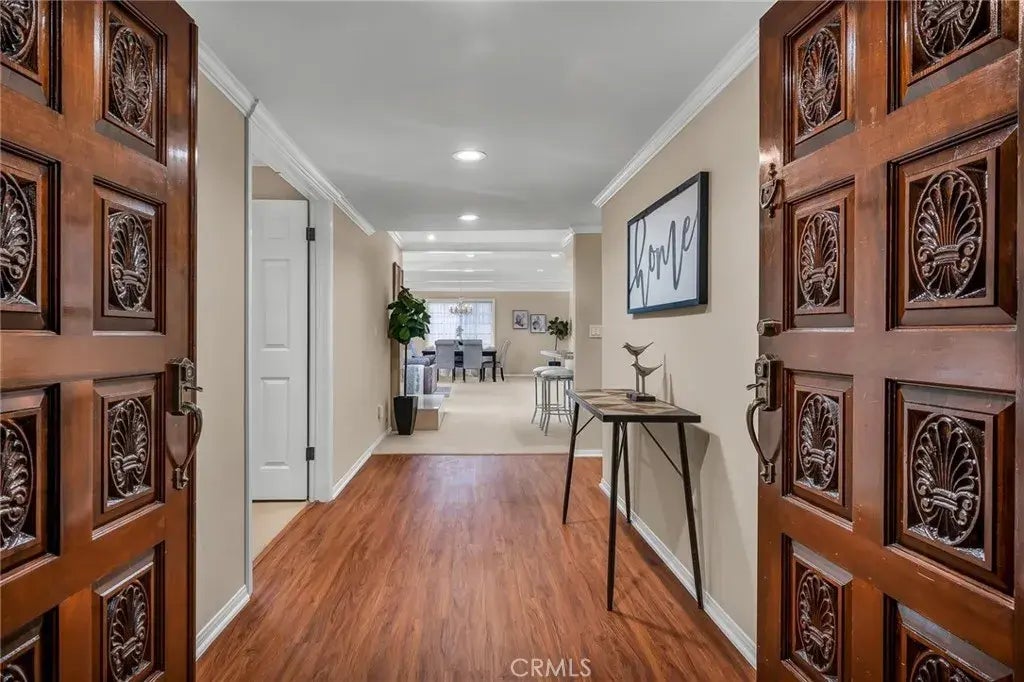 Beautifully upgraded one level home in the heart of Vista Del Oro. Views of the Harbor and Palos Verdes Hills from most rooms. Brand new Taj Majal quartzite counter tops in the kitchen and wet bar make it elegant and beautiful. All new stainless steel appliances include dishwasher, fridge, cook top and hood vent. Oodles of storage in the kitchen with soft close cabinets, drawers and a huge pantry. Both bathrooms have been remodeled as well. The master bathroom has a large walk in shower and a big Roman style tub ready for candles and winding down. Crown molding throughout the home and a beautiful fireplace surrounded in crema marfil marble with a wrap-around mantel. Enjoy the view of the Harbor from the spacious living room and dining area. Off the gorgeous kitchen is a family room/den. You can see the green hills of Palos Verdes while you sit at the kitchen counter or prepare your meals and clean up after. The laundry room also has a view of the hills and is set up with counter space to fold clothes and more storage! The guest bedroom has a walk-in closet and a view of the PV hills too! If you didn't think there was enough storage in the kitchen and laundry, check the hallway for a linen closet and another coat closet. If you fill those up too, there is always the storage ROOM in the parking structure that is approx. 6' X 8' and if that gets full, you have several storage lockers over your two side by side parking spaces. If you're moving from a bigger house, you could probably fit all your "stuff" here too!