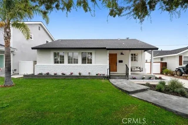 Nestled in the heart of a vibrant beach community is this charming, one-level, three-bedroom, two bath single-family residence. Step inside to experience an inviting open-concept living space, bathed in natural light that highlights the beautifully refinished oak hardwood floors. The expansive living room offers a seamless flow into the dining area and kitchen, designed to accommodate both everyday family meals and larger gatherings. The kitchen is a chefs dream, featuring custom solid maple cabinetry, stylish white oak open shelving, a wine fridge for your collection, and distinctive granite and marble checkered floors that bring both function and flair. There is ample counter space and storage, this kitchen is perfect for preparing meals while staying connected with family and friends. Retreat to the spacious primary bedroom, where you'll find a peaceful atmosphere enhanced by large windows that draw in plenty of sunlight. The room offers ample closet space and is designed to be your personal haven. The adjoining primary bathroom continues the luxurious feel, boasting stunning marble flooring, a custom glass-enclosed shower, and a beautifully crafted double sink vanity made from white oak, offering both beauty and functionality. The home also includes two additional generously sized bedrooms, each filled with natural light and abundant storage, providing the perfect space for children, guests, or a home office. The guest bathroom is equally impressive, featuring striking tile flooring and another elegant white oak vanity. Practicality meets style with the home's dedicated