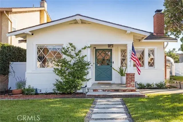 Welcome to this beautifully maintained & updated 2-bedroom, 1-bathroom charming California Craftsman bungalow, featuring a versatile bonus room perfect for a home office or nursery. Located on a quiet street, this home offers both timeless character and charm. Walk inside this home with freshly painted exterior and newer walkway to an open living floor plan featuring hardwood floors throughout and a custom-built fireplace, providing a cozy yet open feel. The spacious kitchen features a large island with bar seating, quartz countertops, abundant cabinet storage, recessed lighting, a wine fridge, and built-in washer/dryer. Enjoy the sunny south-facing private backyard just off the kitchen, complete with new vinyl fencing, built-in garden beds, and a spacious deck perfect for outdoor dining and entertaining. The front bedroom includes built-in shelving and connects to the bonus room, ideal for a nursery, home office/gym, or creative space. The second bedroom with a ceiling fan and large window overlooking the backyard. The bathroom features a newer cabinet & countertop plus extra cabinets as well as a linen closet and coat closet in the hallway for easy accessibility. A long gated driveway offers ample parking perfect for an RV or boat which leads to a detached 1-car garage. Nestled on a quiet street known for summer block parties and the beloved "Torrance Tunnels" holiday light arches. This home is located close to award winning Torrance schools, Wilson Park, Del Amo Mall, Rolling Hills Plaza and less than 15 minutes to the beach. Dont miss the chance to own this bright and c