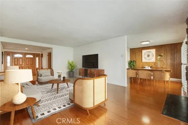 Elegant yet understated, simple yet classic and COMPLETELY mesmerizing...this absolutely stunning, single story, 3 bedroom, 2.5 bath home (approximately 1850 sqft per Assessor) exudes charm, character and a sense of timelessness. The wood laminate flooring throughout glistens and shines as the sun streams in through the plantation shutters which provide the perfect balance of privacy and natural light in the formal living and dining rooms. The tidy and expansive kitchen with room for an informal dining area or comfortable family room adds to the charm and versatility of this lovely, clean and well-maintained home. The common, entertaining areas are in the west wing of this beautiful home while the maintain a sense of privacy in the east wing of this beautiful home. The primary bedroom with private bath is large enough to include a home office AND sitting area while the remodeled bathroom with shower featuring a glass surround and double vanities reflects the same level of classic charm. The second and third bedrooms are quite spacious, each with his and her closets, glistening floors and handsome plantation shutters. Dont miss the powder room off the front entry so guests and visitors do not disturb any residents in the bedrooms. The easy maintenance covered patio with synthetic grass is an added plus for entertaining family and friends or for a quiet getaway with a cup of coffee and newspaper or a well-deserved glass of wine with family or friends. This truly fanciful yet clean and modest, one of a kind forever homeone MUST experience all it has to offer to appreciate the