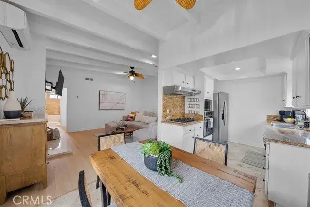 This stylish and inviting townhome is located in a prime spot, perfect for enjoying tranquil sunsets and just a short distance from the award-winning Jefferson Elementary School. As a quiet end-unit in a small 4-unit complex, this home offers both privacy and convenience. The entryway leads to a versatile first bedroom (currently used as an office) and direct access to the 2-car garage with laundry and plenty of storage space. Upstairs, the light-filled living area features soaring beamed ceilings, a cozy fireplace, and stunning new white oak floors, with solar tubes adding natural brightness. The kitchen and dining area include fresh white cabinets, granite countertops, and stainless steel appliances, with a sunny patio perfect for dining al fresco. The spacious main suite offers a large walk-in closet, sliding doors to the patio, and a bathroom with a luxurious walk-in shower. The third bedroom includes a generous closet, and the second bathroom features a shower/tub combo with an updated vanity. With additional upgrades like dual-pane windows, this home is a serene retreat. Low HOA dues cover water, trash, insurance (including earthquake), landscaping, and maintenance. Don't miss out on this gemit's the perfect combination of comfort, style, and location!
