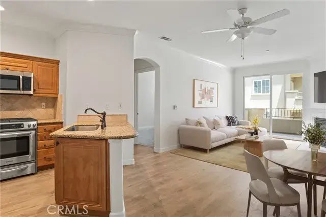 Are you looking for a 55+ independent living community in the heart of Rolling Hills Estates walking distance to coffee, boutiques and restaurants? Look no further! Freshly painted with new flooring throughout this unit features two spacious bedrooms and two bathrooms. Elevator gives you access to the second floor and you immediately feel at home in this tranquil space. When you enter the unit, the cool breeze of the AC and a gorgeous arch greet you as you gaze down at the beautiful hardwood floors in entry foyer opening up to the living, dining & kitchen as sunshine pours through the plantation shutters. Stainless steel appliances glisten underneath the recessed lighting: refrigerator, dual dishwasher, microwave & gas range. Imagine the dinner parties with your guests surrounding the breakfast bar as you entertain. Upgraded, luxury features include elegant crown molding and a cozy gas fireplace to enjoy gazing out on your private deck- a great spot to enjoy your morning coffee. The Travertine backsplash in kitchen is continued in the bathroom shower & tub surround with oil bronzed finish fixtures throughout. Walk-in shower with a glass door & soaking tub in primary suite not to mention the spacious walk-in closet. In-Unit stackable washer/dryer conveniently in a closet. The entrance to the unit is a seating area to enjoy plus 3rd floor open deck with furniture, tables, umbrellas & a gas grill for socializing with your neighbors or entertaining your guests. Walk to medical, pharmacies cafes, restaurants, banks, Post Office, the Peninsula Mall, Grocery & many retail shops! U