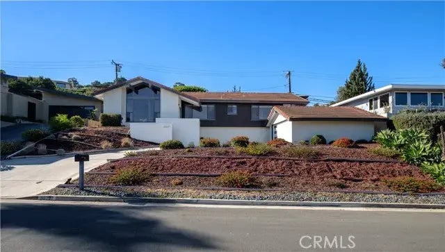 Welcome to 30237 Kingsridge Drive, a stunning contemporary residence in the heart of Rancho Palos Verdes, CA, offering the perfect blend of elegance and modern living. This beautifully renovated mid-century single level home spans 1,840 square feet and sits on a generous 7,924 square foot lot, promising ample space and comfort. As you enter, you are greeted by the warmth of white oak hardwood floors that flow seamlessly throughout the home and soaring high-beamed ceilings. The open-concept living area boasts breathtaking ocean views, and is grounded by a dual-sided modern fireplace, while the formal dining room is perfect for hosting memorable dinner parties. The gourmet kitchen is a chef's delight, featuring sleek stainless steel appliances, a convenient breakfast bar, and ample cabinetry. The primary suite is a serene retreat with a private patio, spacious closet, and a luxurious en-suite bathroom, complete with a soaking tub. Two additional well-appointed bedrooms and a second full bathroom offer versatility and comfort. Wide sliding glass doors fully open into the expansive and private backyard, surrounded by flowering bougainvillea and featuring a sunken outdoor gas fire pit, ideal for outdoor relaxation and gatherings. Enjoy the convenience of a detached two-car garage, providing extra storage and parking. Additional amenities include air conditioning and an in-unit washer and dryer. Situated on a quiet cul-de-sac with easy freeway access and distinguished schools, this home combines tranquility with convenience, making it a true gem in a coveted neighborhood. Experie