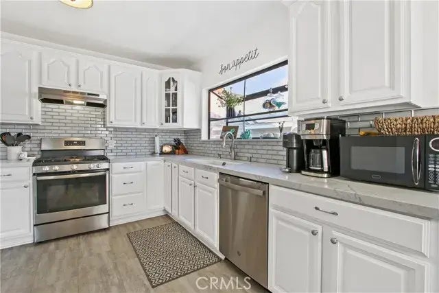 Charming, sunny, and full of character This remodeled 3-bedroom, 1.25-bath Spanish-style home in Vista Del Oro is truly exceptional. Step up to the welcoming front porch and enter a cheerful living room featuring a large picture window with neighborhood views, beautiful built-ins, custom blinds, and a decorative fireplace. The inviting living room flows into a formal dining area, highlighted by uniquely designed original hardwood floors. The bright, remodeled kitchen is a chef's dream, with quartz countertops, subway tile backsplash, sparkling white cabinetry, and vinyl flooring. It includes a cozy breakfast nook, a sunny garden window, a stainless steel stove, and a dishwasher. Youll also find an interior laundry area with ample pantry and storage space. This home also features a tastefully remodeled bathroom with quartz countertops and chevron tile flooring. The two main-level bedrooms are spacious and filled with natural light. Downstairs, youll find an expansive private bedroom with its own cozy sitting area. Outside, the oversized backyard is perfect for entertaining, and the gated rear driveway offers space for up to two vehicles. This home is priced to lease NOW! Dont miss out, call us today!!