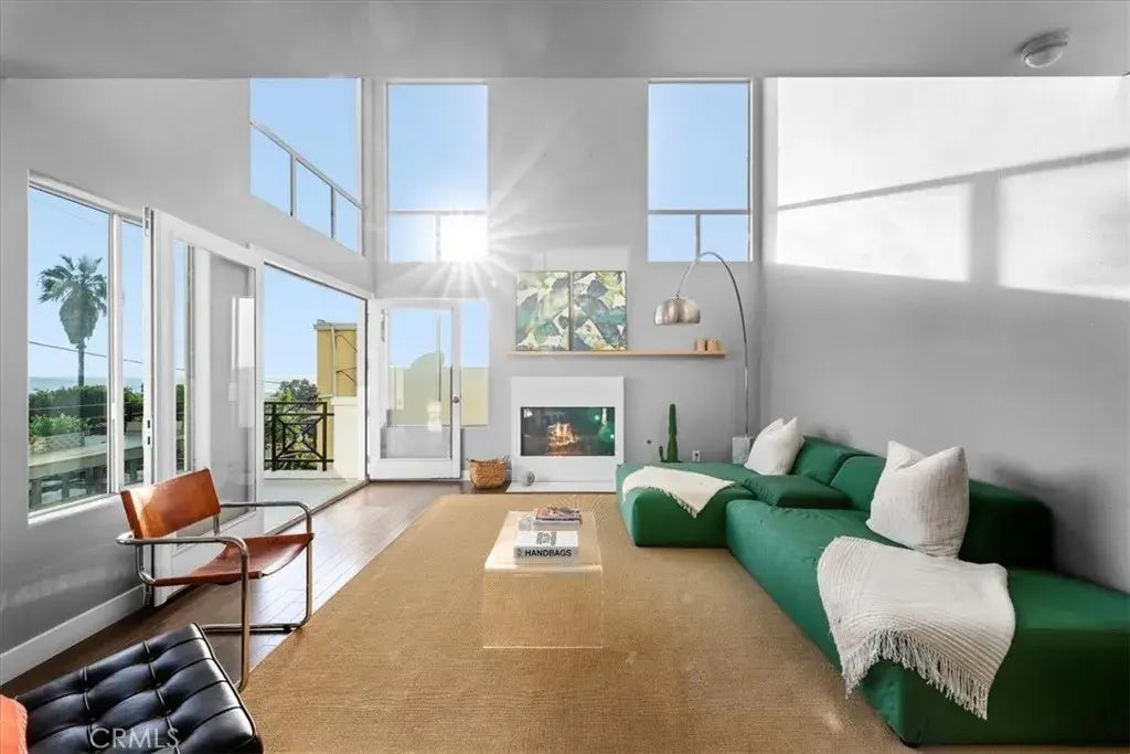 This captivating beauty features three ocean-view decks and an architectural design you'll love to call home. Quietly nestled at the rear of the complex, this end-unit home boasts thirty-foot ceilings and three stories of expansive ocean-facing windows, creating a glorious ambiance of natural light and incredible views from almost every window. The kitchen is custom-fitted by Bulthaup, one of the top luxury European designers, and includes built-in Sub-Zero and Gaggenau appliances. Upstairs, you'll find an open loft with the best views in the house, visible right from the sofa or its serene deck. The loft doubles as a third bedroom, making it an excellent option for your office or guest room. The primary bedroom has mesmerizing ocean views from the bed and a private balcony perfect for sunset gazing. Both spacious bedrooms feature en-suite baths and endless ocean breezes. You'll love the convenience of the private 2-car garage and assigned guest parking space. This one-of-a-kind home includes in-unit laundry with a top-of-the-line washer and dryer. It is situated in the most beautiful complex on Manhattan Beach Blvd, away from the street noise, and just steps from the Pier and everything Downtown Manhattan Beach has to offer.