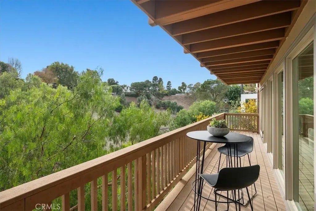 Welcome to this charming 3 bedroom plus Office home nestled in the prestigious Valmonte neighborhood of Palos Verdes Estates. Offering lovely canyon views and a serene ambiance, this residence is a harmonious blend of sophistication and comfort. The main level features beamed, vaulted ceilings and an open living room with rich hardwood floors, a brick fireplace with a raised hearth, and wood sliders that open to a spacious balcony running the length of the home where you can savor sunsets and take in the tranquil vistas. Adjacent is the formal dining area, seamlessly connecting to the chefs kitchen, which boasts granite countertops, luxurious custom cabinetry, and a center island ideal for meal preparation. The kitchen has a 6-burner stainless steel Viking cooktop, built-in Dacor refrigerator, stainless steel oven, and microwave. A door from the kitchen leads to an outdoor patio, perfect for al fresco grilling. Just off of the kitchen is a separate laundry room with ample cabinetry and an extra-large cedar-lined storage room. A cozy bedroom or office space featuring plush carpeting and recessed lighting has charming French doors that open to a private patio. The primary suite on this level has vaulted ceilings, treetop canyon views, and direct access to the balcony. The en-suite bathroom is a haven with a soaking tub, generous glass-enclosed shower, dual sinks, and marble countertops. The lower level expands the living space with a versatile family/game room complete with a fireplace and access to another large balcony, inviting abundant natural light. A bedroom on this lev