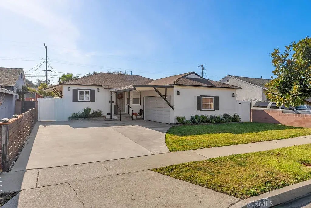 Beautifully Updated 2 Bedroom Home in Gardena with Spacious Yard. This charming 2 bedroom, 1.5 bath home in Gardena offers 1,123 sq ft of comfortable living space with an open concept design that seamlessly connects the kitchen, dining area, and living room. The home could easily be converted back into its original 3 bedroom layout. Recently painted inside and out, the home exudes a fresh, modern feel. The fully remodeled kitchen is a standout feature, with new cabinetry, quartz countertops, a stylish tile backsplash, and durable laminate flooring. Enjoy the convenience of a new, quiet dishwasher, a free standing range hood, and microwave plug-ins tucked inside a cabinet for a sleek look. The living room opens to the backyard through double paned sliding doors, creating a seamless transition between indoor and outdoor living. The backyard is a true retreat, featuring a variety of fruit trees, including pomegranate, lemon, and apple trees, ideal for gardening, relaxing, or enjoying outdoor meals. The generous primary room offers ample space and has ADA compliant features. The adjacent bathroom includes a walk-in shower, making it both functional and accessible for all. Double pane windows all the way throughout, whole house AC, Nest Thermostat, and new vinyl gates are just some of the updates that were recently completed. Set on a 5,619 sq ft lot, this home also offers a 2 car garage and driveway parking for added convenience. With its modern updates and a large private backyard, this Gardena gem is move-in ready and waiting for you to make it your own!