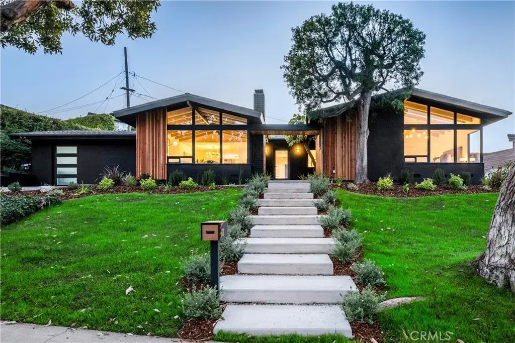 Stunning mid-century modern revival, bringing the glamour back to the Hollywood Riviera. With jaw-dropping ocean and city views, this 4-bedroom, 3-bath single level home is guaranteed to impress. Perfectly situated in the sought-after upper Hollywood Riviera neighborhood of South Redondo Beach, this architectural gem blends timeless charm with modern sophistication. Completely updated, the 2,296 sq. ft. (BTV) residence was meticulously redesigned, showcasing hand-stained vaulted ceilings with exposed beams, expansive custom windows, a showstopping main fireplace in formal living room. The open-concept design provides seamless indoor-outdoor flow, perfect for entertaining and enjoying the Southern California lifestyle. The gourmet kitchen features custom panda porcelain countertops and backsplash, skinny shaker cabinets, and top-of-the-line stainless steel appliances. Its thoughtful layout encourages effortless transitions between indoor and outdoor dining. The luxurious primary suite is both romantic and mesmerizing, upon entering you are greeted with panoramic city and ocean views, spa-like ensuite bath and a dreamy walk-in closet. Three additional bedrooms offer flexibility for guests, a home office, or creative spaces, all finished with meticulous attention to detail. This home includes two fireplaces, state-of-the-art smart systems (WiFi-enabled security, lighting, irrigation, and more), and brand-new custom interior and exterior doors. Set in a prime location, the property offers panoramic ocean and city views from multiple vantage points. The private backyard features