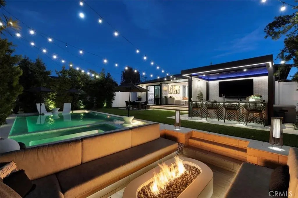 Behind a private, hedged entrance, a neatly landscaped front yard welcomes you to an entertainers paradise. A great room and kitchen bathed in natural light exudes sophistication and warmth. The island is the perfect setting for any occasion, whether arranging h'orderves for the party or assisting with homework while dinner simmers. The true showstopper is the backyarda resort-inspired sanctuary designed to elevate any gathering. Dive into the sparkling pool with a Baja shelf and unwind in the hot tub. Al fresco dining is served from a gorgeous, covered outdoor kitchen complete with Bromic heaters and your favorite beers on tap. Its safe to say youre the new host of the big game!