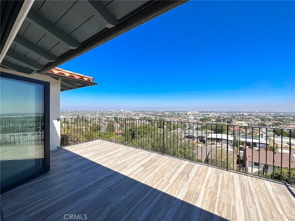 Gorgeous Upper Riviera, reverse floorplan 3 bedroom 2.5 bath two-level home with panoramic views of the entire LA basin! Enter through the attached 2-car garage (with laundry inside!) or through private front brick patio. The top (street) level is a stunning open-concept living space, with breathtaking panoramic views throughout! The beautiful, remodeled kitchen features elegant quartzite counters, breakfast bar, bay window, copper sink, high-end stainless steel appliances, rich cabinetry with tons of kitchen storage, and a in-island 6-burner stove, with range hood inset into the ceiling! Just beyond you'll find the spacious living room, with built-in mahogany library, and gas fireplace panel feature... And best of all, bi-fold glass doors that can open all the way across - leading to a balcony with views of the ocean to the west, and span across the entire LA basin. Also on the top floor, a guest half bath, and primary suite, which includes two closets (one is a huge walk-in), ensuite bathroom with a step-in shower, and a large bedroom space that shares the same stunning views. The lower level is just as impressive, with a spacious second living room with lovely tile floors, a gas fireplace, and an identical set of bi-fold doors opening everything to the backyard and panoramic views. Also on this level are two more bedrooms, full bath, utility room, and backyard patio that spans the length of the home. Relax in the built-in-brick hot tub spa while gazing at the miles of twinkling city lights! Located in fantastic school district, great neighborhood close to shops and resta