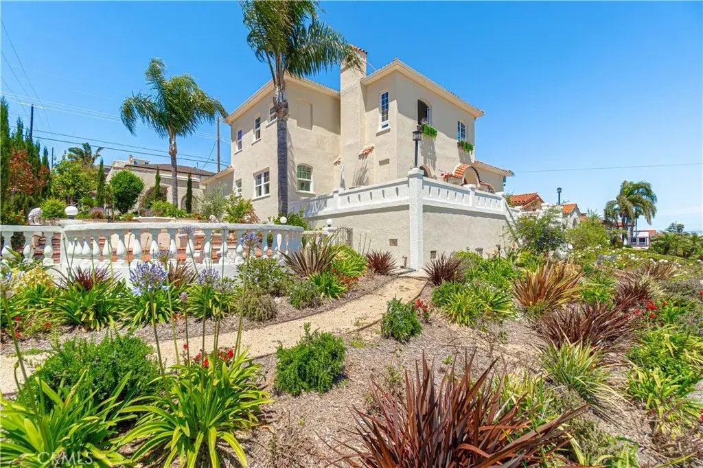 HISTORIC LANDMARK VILLA - Built in 1924 This breathtaking property is a masterpiece of timeless elegance, offering a harmonious blend of historic charm and Mediterranean style. Nestled high above the street on a 10,801 sq. ft. lot, this villa boasts 180-degree views of the ocean, harbor, neighborhood, and surrounding hills. Approach the home via outdoor Spanish steps and step through a magnificent 10-foot curved entry door, an original design from 1924. Once inside, the grandeur of this villa unfolds with floor-to-ceiling windows that open for fresh ocean air and panoramic views. Spanning 3,052 sq. ft., this 4-bedroom, 3-bath home epitomizes spacious California-style living with a Mediterranean flair: *Living Room: A grand space with high-beamed ceilings, large water-facing windows, and French doors leading to a pergola-covered patio. *Private Library: Adjacent to the living room, featuring stunning harbor views, an Italian marble fireplace, and custom armchairs for cozy relaxation. *The library opens onto a wrap-around balcony with breathtaking views. *Dining Room: A ballroom-like setting perfect for hosting, with space to seat 10+ guests. *Kitchen: An expansive white cabinet design with a double oven and 5-burner stove, perfect for culinary enthusiasts. *The Master Bedroom features two large windows with ocean and harbor views, allowing for serene mornings with coastal breezes. *A second upstairs bedroom, currently used as an office, overlooks the charming neighborhood. *Two additional bedrooms on the main floor each feature ensuite bathrooms. *Basement: Fully finished an