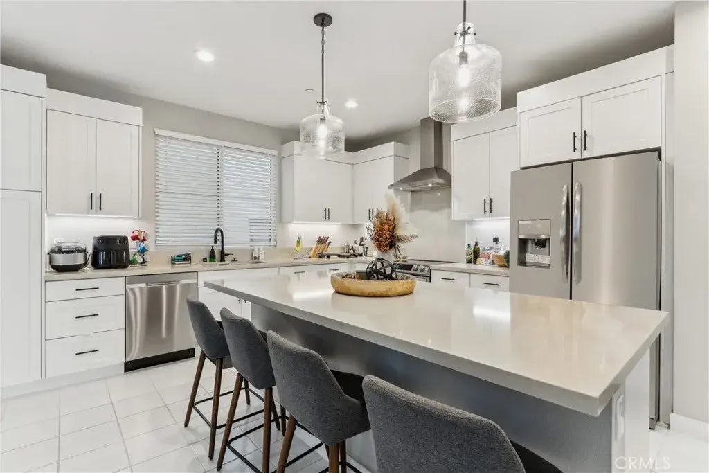 Step into sophisticated living within Rosecrans Place with this stunning three-story, 4-bedroom, 4-bathroom townhome built in 2021, offering 2,353 sq. ft. of thoughtfully designed space with owned rooftop solar panels. Nestled in a sought after gated community, this home blends modern style, smart features, and a prime location for an elevated living experience. The first floor features an open-concept kitchen, dining, and living area that flows seamlessly onto a private patio, perfect for indoor-outdoor living, and directly accessible from your spacious two-car garage with upgraded epoxy floors and EV charger outlet. The gourmet kitchen boasts sleek white cabinetry, quartz countertops, modern black finishes, stainless steel appliances, a large center island with seating, and a touch-on/off kitchen faucet with Bluetooth capabilities. A half bath on this level adds convenience for you and your guests. The second floor offers four bedrooms, including a primary suite with a large walk-in closet and a spa-like en-suite bathroom featuring dual sinks, modern black hardware, a soaking tub, and a separate glass-enclosed shower. A dedicated laundry room on the second floor provides ease of living and use. The third floor boasts a spacious loft, serving as the ultimate flex space that is ideal for a home office, media room, or guest suite and has its own half bath. The third-floor loft is complemented with access to a covered balcony with breathtaking mountain views. The home is complete with smart home technology, including a Nest thermostat, recessed lighting, and energy-efficient