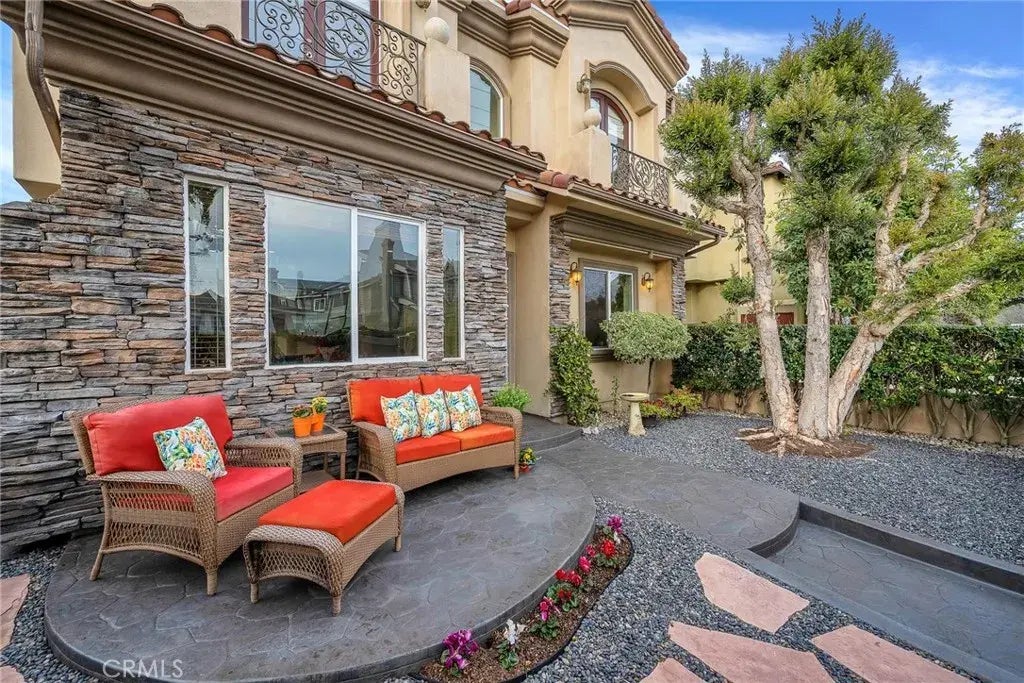 Welcome to this stunning front unit of an attached two-on-a-lot townhome, located in the highly sought-after neighborhood of North Redondo Beach. Step into the charming enclosed front yard, surrounded by lush greenery, mature trees, and bathed in natural sunlightoffering both privacy and a serene outdoor retreat. The open concept living area is perfect for entertaining, featuring soaring ceilings, abundant natural light streaming through large windows, and a cozy fireplace. A convenient powder room adds to the thoughtful layout. Extra storage closet under the stairs with direct access to the attached two-car garage, adding both convenience and functionality. The gourmet kitchen boasts granite countertops, stainless steel appliances, and ample cabinet space, seamlessly flowing into the spacious dining room adorned with elegant wainscoting and filled with natural light, ideal for family gatherings and dinner parties. Upstairs, the expansive primary suite serves as a true retreat, complete with a cozy fireplace, space for a sitting area, a large walk-in closet, and an en-suite bathroom featuring dual sinks, a soaking tub, a separate walk-in shower, and a private water closet. Three additional generously sized bedrooms provide flexibility for family, guests, or a gym/home office. A well-appointed hall bathroom includes a separate tub and toilet area, two sinks making it convenient for shared use. Two of the bedrooms feature French doors that open to balconies, welcoming fresh coastal breezes. Just down the hall, youll find a convenient laundry room with ample storage and a full