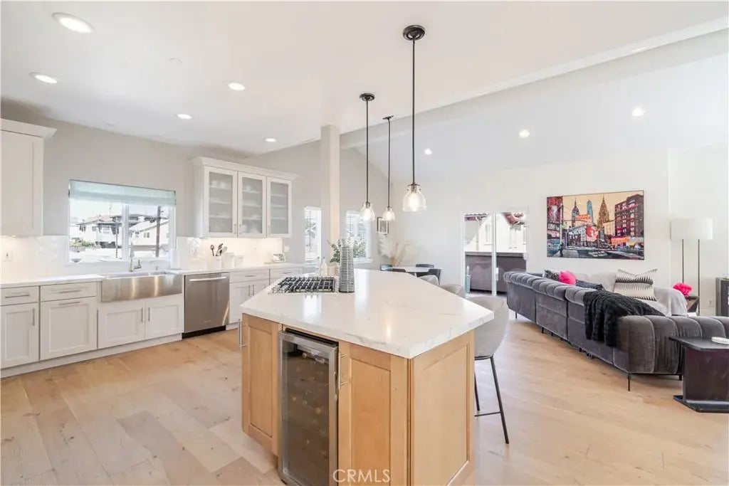 Welcome to luxury coastal living in this beautifully updated 4-bedroom, 2.5-bathroom, detached townhome, perfectly situated in the heart of South Redondo Beach. Designed with a reverse floor plan, this home maximizes space, natural light, and privacy, all while being just minutes from the beach and award-winning schools. The open-concept living, dining, and kitchen areas showcase wide plank wood floors, vaulted ceilings, and expansive windows that flood the space with natural light. The chefs kitchen is a true showpiece, featuring quartz countertops, custom cabinetry, and stainless steel appliances, making it the perfect space for cooking and entertaining. Upstairs, the primary suite offers a luxurious retreat with vaulted ceilings, a cozy fireplace, and a spa-like ensuite bathroom with modern finishes. Downstairs, three spacious bedrooms share a beautifully updated full bathroom, providing flexibility for family, guests, or a home office. Sliding doors open to a private backyard oasis ideal for outdoor relaxation. This home also features central air conditioning and a 2-car attached garage with an EV charger, combining style and functionality for modern living. With a prime South Redondo Beach location, stunning finishes, and an unbeatable coastal lifestyle, this home is a must-see!