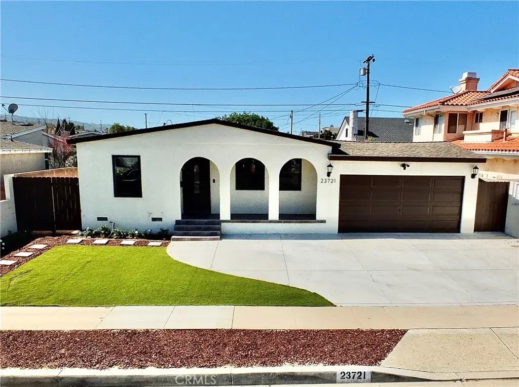 Welcome to 23721 Alliene Ave, a beautifully remodeled 1,482 square foot modern Mediterranean home featuring three bedrooms, two bathrooms, and a spacious converted family room. This exquisite masterpiece is situated in one of Torrance's prestigious neighborhoods and comes with city approval for a 1,000 sq ft ADU and an additional 175 sq ft patio, complete with its own address: 23723 Alliene Ave. The ADU offers three bedrooms and two bathrooms, making it a perfect addition to this stunning property. Enter the grand open kitchen, a chef's dream, featuring a magnificent center island, pristine quartz countertops, designer fixtures, and state-of-the-art Samsung smart appliances. The sophisticated living room showcases elegant porcelain wood flooring and a striking open beam ceiling, creating an ambiance of refined elegance. The master room is offers an expansive bedroom and a lavish en-suite bathroom with dual sinks, stunning shower tiles, and luxurious porcelain tile floors. The converted garage has been transformed into a magnificent family room, ideal for hosting grand gatherings and creating unforgettable moments. This exceptional residence also boasts modern comforts such as centralized air conditioning and heating, a tankless water heater, double-pane windows, and city approved plans for an ADU. This extraordinary home is truly a rare gem that must be seen to be believed!