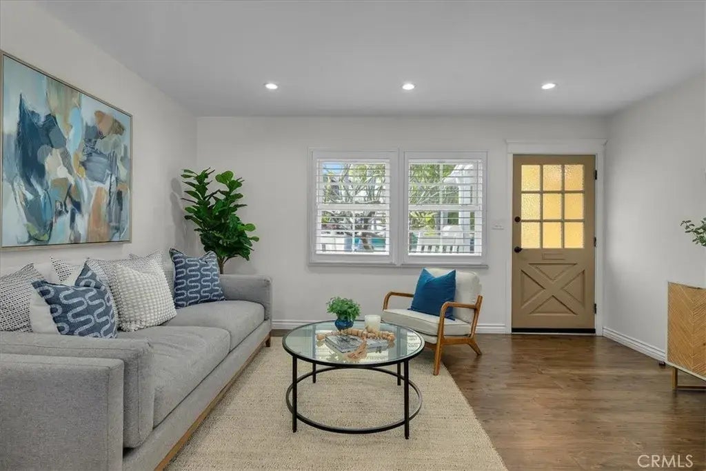 Welcome to this charming cottage-style home in the highly desirable Walteria neighborhood of Torrance. Thoughtfully expanded and beautifully updated, this 3-bedroom, 2-bathroom home offers 1,312 square feet of stylish and functional living space, including a fully permitted laundry room attached to the garage with generous built-in storage. Step inside to find a bright and welcoming interior featuring engineered hardwood floors throughout, recessed dimmable lighting and modern updates that blend comfort with timeless appeal. The home includes updated electrical and plumbing systems, a re-lined sewer line to the street, new central AC and heating, a tankless water heater, and a newer roof installed in 2016providing peace of mind for years to come. The kitchen is a dream with stainless steel appliances, seamlessly opening into the cozy living room adorned with plantation shutters and built-in outdoor speakers for effortless indoor-outdoor entertaining. The primary suite is a true retreatnearly tripled in size from its original footprint. Enjoy a luxurious walk-in shower with a rain shower head and bench, a soaking tub, motorized shutters, a walk-in closet and French doors that lead to a serene backyard oasis. Outside, the private backyard is perfect for both relaxing and entertaining. The patio, strung with charming caf lights, sets the mood for cozy evenings, while the grassy play area provides space for fun and outdoor hobbies. Enjoy the bounty from your own fruit treesavocado, lemon, lime, orange, and appleand admire the mature plumeria trees in the front yard. The backyar