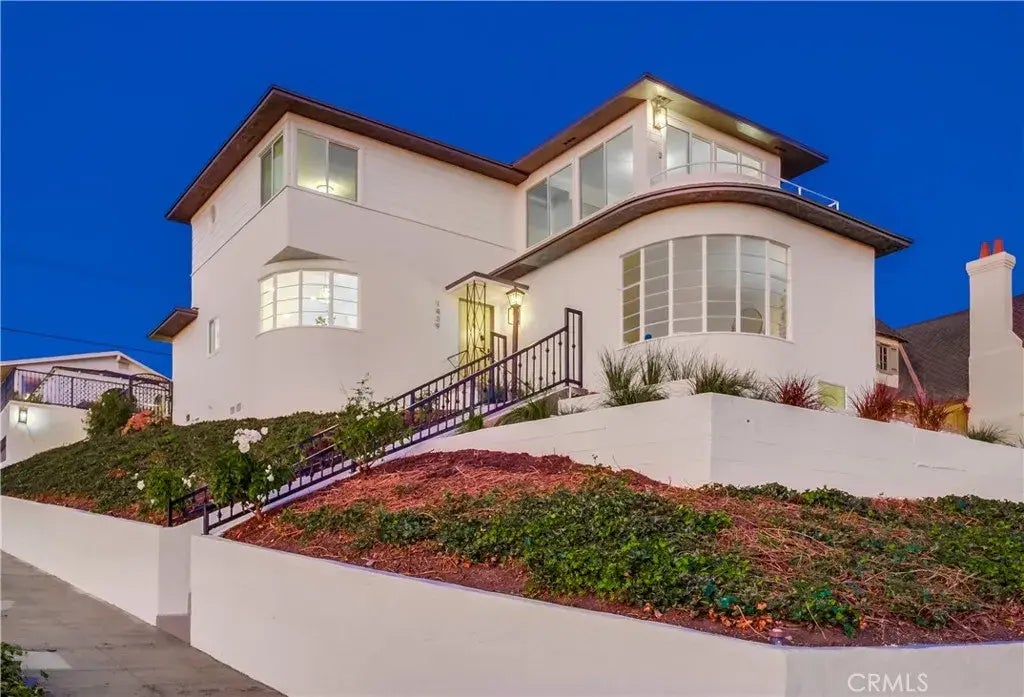 How would you feel waking up to a beautiful sunrise every morning that can be enjoyed from almost every room in the house? What about watching the active LA Harbor as the ships sail through Angels Gate? Or maybe the beautiful twinkling lights after the sun goes down? This move-in-ready 1940s beauty, perched high on an elevated corner lot in the prestigious Vista Del Oro area, offers that opportunity. Imagine enjoying panoramic harbor, mountain, city light, and ocean views from your interior living spaces while also enjoying the same views from all of the outdoor areas. From the minute you pull up, this classic San Pedro home will impress you. The beautiful interior, where timeless elegance meets modern comfort, is highlighted by wide-plank hardwood floors that flow seamlessly throughout. The formal living room, featuring a cozy fireplace and panoramic views, provides the perfect setting for relaxation or entertaining. Adjacent to it is the formal dining room, an elegant space ideal for hosting gatherings. For more casual moments, the family room offers a second fireplace and a convenient laundry closet, ensuring warmth and practicality. The remodeled kitchen is a chefs dream, blending style and functionality. Crisp white cabinetry pairs beautifully with sleek quartz countertops and premium stainless steel appliances. A wine refrigerator adds a touch of sophistication, while the bright breakfast area is the perfect spot to enjoy your morning coffee. Accessible through a charming half bath or an exterior door, the finished basement presents a versatile space for a home office