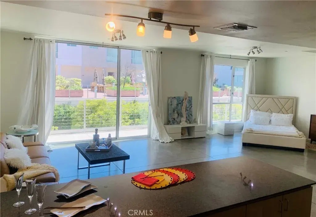 Centre Street Lofts, in the heart of downtown San Pedro's Historic Arts District, offers modern urban living in contemporary lofts. A controlled access building and garage. This third-floor unit is a true loft style with no dividing walls for the bedroom area, but the addition of a divider or even a pony wall can easily create the feel of a separate bedroom. A wall of tall windows provides abundant natural light and overlooks a beautifully landscaped courtyard with BBQs, dining, lounging, and entertaining areas. High ceilings, gray industrial-style polished concrete floors. The oversized Kitchen has a generous-sized granite counter with bar seating for 6. Stainless steel appliances include a side-by-side refrigerator (not warranted), built-in microwave, gas cooktop, electric oven, and dishwasher. There is a walk-in closet and a hall closet that can easily be converted to a storage closet or a pantry. Also, a laundry closet with a European-style washer/dryer. There is a full bathroom and central heat and air. The secure garage has 2 assigned parking spaces (not tandem). The complex is meticulously maintained, and the landscaping is always picture-perfect. Pets are allowed with restrictions. Enclosed dog run. There are very few options to purchase a loft or condo in this artsy downtown area. Convenient location: minutes from the 110, the 405, and the bridges to downtown Long Beach. It's a short stroll to the waterfront and the new 6th Street Plaza. The immediate neighborhood boasts many restaurants, pubs, entertainment venues, plus a hip art scene. It's a pleasant stroll to t