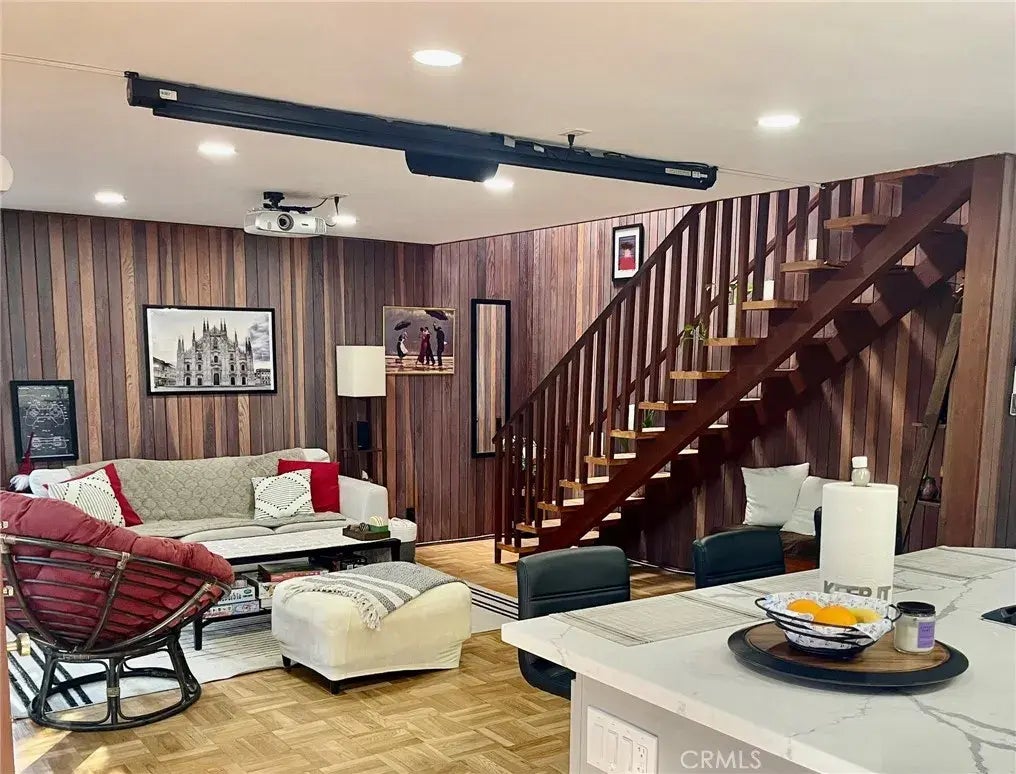 Fantastic mid-century 2BD+1.5BA rustic architectural condo townhouse nestled in a small complex on a quiet cul-de-sac in the heart of prime Brentwood. Open living, dining & kitchen floor plan with a mountain vacation home vibe featuring whitewashed redwood paneled walls, parquet oak floors, tons of storage, recessed lighting, & floor-to-ceiling windows & doors that open to the private wrap around patio. Floating staircase leads to two upstairs bedrooms with post & beam ceilings, skylights, clerestory windows, custom closets and access to a private balcony. Community laundry included with rent and possibility to rent with furniture. A retreat surrounded by mature trees & lush landscape. 2 separate parking spaces, convenient location to Brentwoods restaurants, shopping and running paths. Apply here => https://www.rentspree.com/apply/67fad1948687fc002e85ecc4/landing/apply-now?utm_source=crmls&utm_medium=applylink&utm_campaign=partner_integration