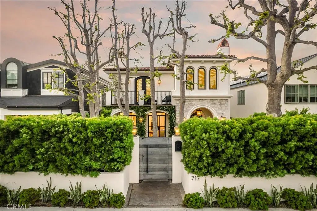 Contemporary Mediterranean with Custom Detail This custom-quality estate with elevated Architectural Digest-worthy design offers a unique floorplan, upgraded finishes, vibrant outdoor spaces and exceptional curb appeal. Nestled behind a custom wood gate and high hedges with a spacious, lushly landscaped front yard marked by soaring trees for added shade and privacy, this 4-bedroom, 6-bath, Santa Barbara-style residence features archways draped in jasmine vines and a wrought iron balcony, fusing Old World refinement and a fresh contemporary aesthetic that sets the tone for a high-touch interior featuring coffered ceilings, wood floors, refined fireplaces, neutral hues and Carrera marble throughout. Highlighting two luminous living spaces that open to both the front and back yard oases featuring tranquil water features, fire pits and a built-in BBQ, the unique floorplan also features a showpiece chefs kitchen with Thermador appliances, ample storage, walk-in pantry, and eat-in kitchen island with adjacent dining room and dream 175-bottle wine display. Upstairs offerings include the sumptuous primary suite with secluded balcony and ensuite spa bath with marble walk-in shower, sculptural soaking tub and two walk-in closets. Just off the primary suite, a bonus room/flex space is easily transformable for use as a nursery or office/study, while the kids wing houses two bedrooms with ensuite baths, in addition to a separate family room that is ideal as a media and hangout space and large enough for conversion into a fifth bedroom. Outfitted in smart technology, including in-house s