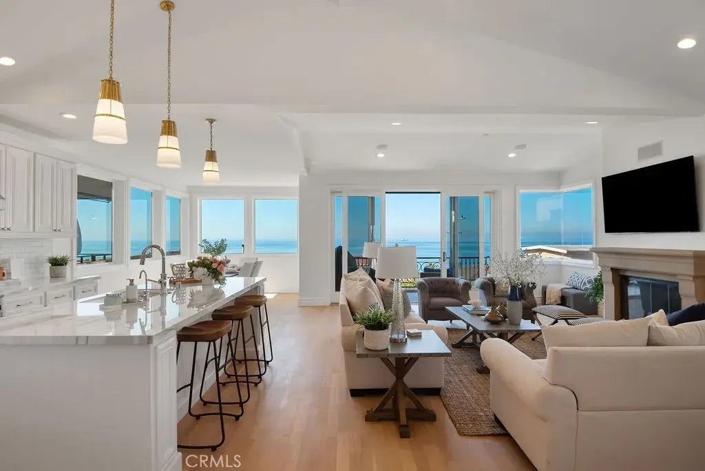 Beachside living in Manhattan Beach Sand Section with breathtaking, unobstructed ocean views. This fully furnished three bedroom residence is positioned on a walk street just mere steps from the beach. The top floor unveils an exquisitely designed open concept, where an expansive kitchen, dining area, and a grand living room converge seamlessly, all framed by a warm and inviting fireplace. Boasting three nicely appointed bedrooms, including a lavish primary suite with balcony, adorned with double sinks, a gorgeous walk-in shower, separate soaking tub, and generous walk-in closet. In addition, the residence was completely remodeled in 2022 and includes a 3-stop elevator, separate laundry room, air conditioning and attached 2-car parking garage with an additional carport space. This home will allow you to experience the coastal dream in its purest form and entertain with ease. Conveniently located moments from North Manhattan Beach with dining options, fitness studios and shopping nearby.