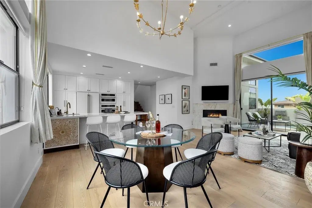 This beautiful 4 bedroom, 4-bathroom + flex room townhome, built in 2019, is perched on one of the highest points in Redondo Beach Villas South, offering stunning views of Palos Verdes, and the surrounding mountains. Designed with a warm Contemporary Bohemian vibe, the open floor plan features French oak floors, high ceilings, and a recently remodeled kitchen with matte white Caf appliances, a copper farmhouse sink, custom walnut cabinetry, and an on-demand hot water tap.The spacious primary suite includes a Serena & Lily pendant, a walk-in closet by California Closets with theater lighting, and a spa-inspired bathroom with a walk-in rain shower and freestanding clawfoot tub. Three additional bathrooms have been upgraded with Delta multi-function shower heads, and the lower-level bath includes a soaking tub.A fully enclosed third-level loft adds flexibility as a fifth bedroom, guest room, or office, and the rooftop deck with artificial turf is ideal for soaking in sunsets and city views.Throughout the home, youll find designer wallpaper from Justina Blakeney, Emma J. Shipley, and Holli Zollinger, adding playful elegance to each space. Additional features include whole-house Life Source filtered water at every tap, Nest climate control, Ring doorbell, Bay Alarm security system, Majestec security screens, and an LG washer and dryer. With a $200/month HOA, award-winning schools, and just a short bike ride to the beach, shopping, and dining, this home blends style, comfort, and a true coastal lifestyle.