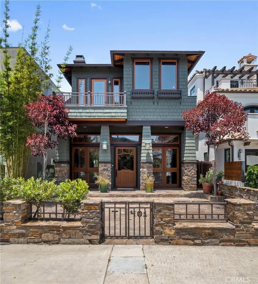 AMERICAN CRAFTSMAN ARCHITECTURE! This home exsudes the craftsmanship of a bygone era. A textbook example of a turn of the century Arts and Crafts Designed home known as historic Modernism. Located on a South Sand Section Walk Street with a large sunny south facing stone patio this home exudes charm, warmth and welcome. The exterior is a combination of patterned wood shingles, natural stone columns and chimneys, ornamental metal gates and railings, abundant glass windows and doors and lighting of the period. While the interior combines wood window and door casings, stone accents, builtin bookcases and cabinetry, hardwood floors and and air-conditioning throughout. The sumptuous sized living room with its high beam ceiling features a stone fireplace, walls of wainscoting, clerestory windows and opens to the front walk street patio. The dining space is perfect for family dinners as well as for hosting a large group and opens to the private side patio with builtin outdoor fireplace. The kitchen is a master class in design and utility. The full compliment of stainless builtin appliances are perfectly positioned in the custom granite topped cabinets including a huge center island with second sink and breakfast bar seating. The powder room serves visiting guests and beach goers with an exterior entry and a beach shower.. A unique carved wood staircase carries you to the upper floors. The middle floor consists of three individualized bedrooms and two full baths. An exterior balcony brings the breeze. The third floor primary suite is spacious and sunny and opens to a sundeck overloo