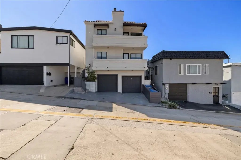 Coastal living at it's finest! Beautiful ocean views, with ample parking for 4 vehicles in the garage, with an additional 5th spot in front, will capture you as you enter this tri-level, custom and newly renovated home. Nestled just eight houses up from the strand with unobstructed whitewater views from Palos Verdes to Malibu, this El Porto residence offers the best of California's luxurious beach living with prime access to the BEST surfing in the South Bay. There's plenty of space to relax after long days of work or play in this expansive 4 bedroom, 4 bath home. The top floor includes a beautiful kitchen featuring sleek Corian countertops, premium Viking - stainless steel appliances and contemporary custom cabinetry. The large kitchen windows provide beautiful views while flooding the space with plenty of natural light. The adjacent dining room which can double as a family room includes a natural stone fireplace, accessing a deck perfectly situated for a BBQ. Also included are 2 bedrooms - the primary bedroom with access to a back balcony, and en-suite bathroom. The second bedroom sun drenched from it's westerly facing windows, provides a private hide-away access to a hidden roof-top deck. The 360 degree views, create the perfect perch with which to watch the bustling of the beach during the day, or an exquisite spot to star-gaze at night. The middle floor mimics the layout of the top floor with a more 'formal' living area featuring a second natural stone fireplace and deck. This floor also includes an office nook equipped with ample cabinetry for storage and a mini-bar a
