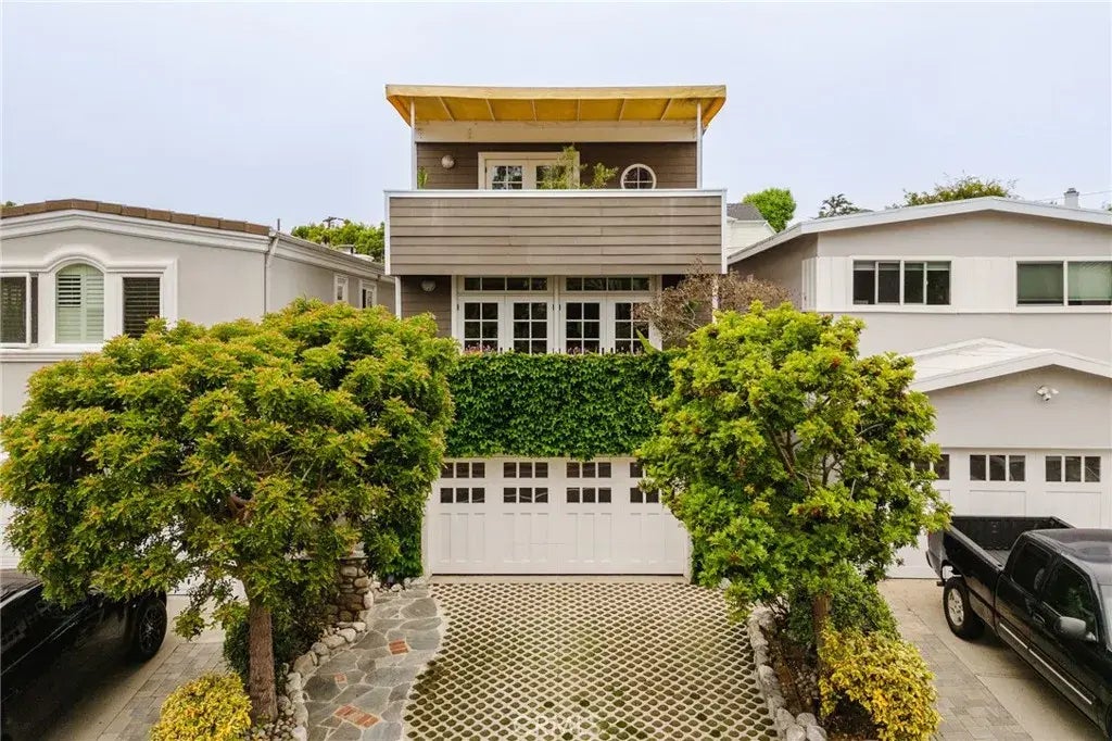Stunning fully remodeled beach residence with impeccable design and a private backyard in the highly sought-after Manhattan Beach tree section. The homes curb appeal captivates with refined architectural lines, lush climbing greenery, and mature sculpted trees framing the entry, while a custom stone-inlaid driveway and carriage-style garage door add timeless character. Unique indoor-outdoor living is highlighted by multiple balconies throughout the home bringing in abundant fresh ocean air, and a large bonus room with a full en-suite bathroomperfect as an office or guest suiteopening to a stylish backyard complete with a stone fire pit, BBQ area, and ample seating, designed for effortless entertaining and memorable moments with friends and family. The stairs lead you to French doors revealing a striking open-concept interior with elegant white paneling, exposed beams, classic double French doors that flood the room with natural light, hardwood floors and a modern chandelier amongst other minimalist pendants. The show-stopping brick fireplace provides both warmth and charm. The remodeled kitchen exudes bright, modern sophistication with crisp white cabinetry, glass-front cabinets, and a spacious wooden island with seatingideal for cozy mornings. Enhanced with white marble countertops and abundant natural light, also features a spacious pantry with additional cabinetry, a water filtration system, and a concealed door, offering ample storage and a cohesive aesthetic. Upstairs, three generously sized bedrooms each offer their own charm and functionality, along with a designated