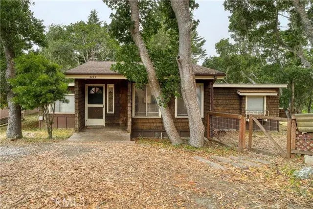 Wonderful opportunity live in the picturesque hills of Cambria. Situated on a huge 12,300 sq ft lot this charming 2 bedroom 2 bath home is ready for your remodeling ideas. Featuring over 1300 sq ft of interior living space including a formal dining room with large picture windows bringing in the natural light, and a pass through window to the kitchen. The living room features wood beamed ceilings, hardwood floors and a wood burning fireplace. The galley kitchen features an opening to the hallway adding light from the French doors leading to the back yard. The hardwood floors continue from the living room to the 2 bedrooms including the primary bedroom with en-suite bath. The oversized lot provides plenty of space to relax among the trees, gardening and even the potential to build a shop. Located just a half mile from the Trenton Entrance to the Fiscalini Ranch Preserve with great hiking trails, a mile from coastal access and just 2 miles from Downtown Cambria with great restaurants and shopping.