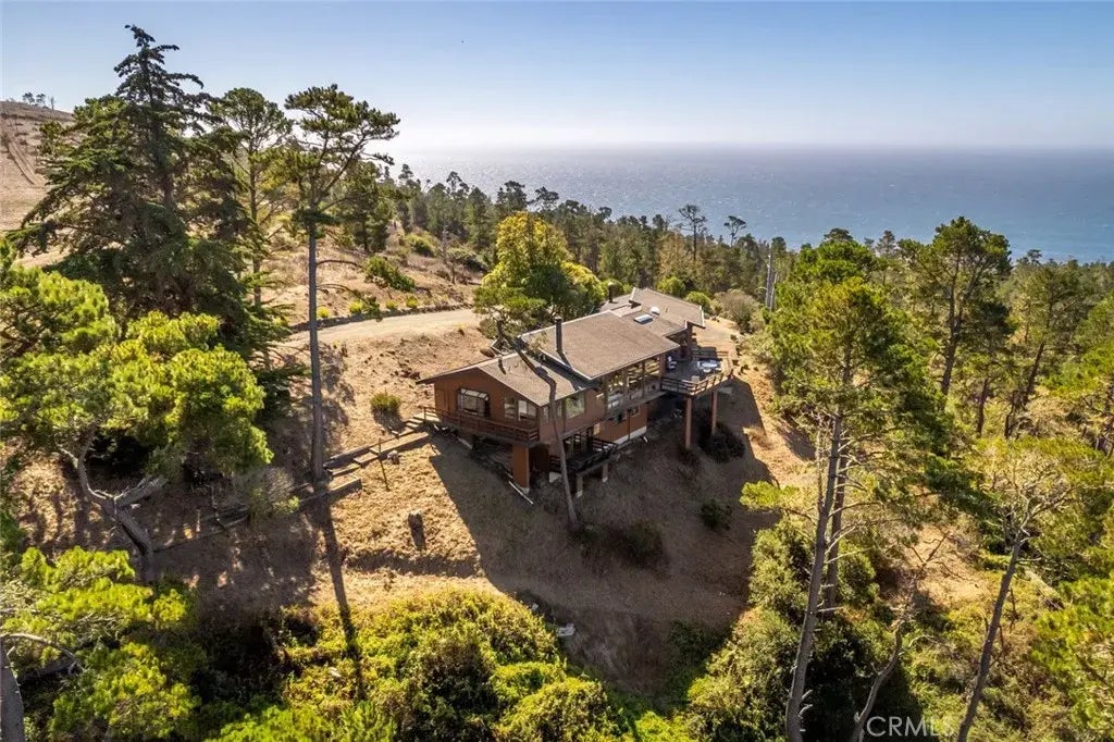 Do not miss out on this once in a lifetime opportunity to own one of the largest properties for sale in Cambria! Sit on your deck and listen to the sounds of the ocean and sea life. Gaze up the coast to see Hearst Castle and Lighthouse views...Call your Realtor today to make an appointment to see this 3700 sq. ft. home on 15.32 acres (APN 013-122-006)+ 1.21 (APN 013-122-005)= 16 1/2 acres.... right in town and bordered by ranchland. Very Motivated Seller! Never been on the market before, one family ownership! Privacy abounds with no CC+R's... Light and bright with an entire wall of windows facing 180 degree ocean views all the way up and down the coast. Set in a pine forest it has a wonderful view deck and another barbeque deck conveniently located off the kitchen. High vaulted ceilings and a very open concept equals a perfect setting for entertaining and enjoyment! There is a cozy wood burning stove in the breakfast nook next to the large cook's kitchen, with a large center island which boasts a warming oven as well as a wolf induction burner. Lots of cabinets and counter space, a six burner Viking counter top unit as well as a double Bosch oven. Very large pantry and storage area...An abundance of windows that lets the outside in. The kitchen opens into a large dining area with another wall of shelves and cabinets and storage for all your beautiful dishes and glasses. This flows into a lovely foyer were a Baby Grand piano sits....perfect for entertaining , which flows right into a large living room with a built in bar and huge fireplace. There is a built in office to the