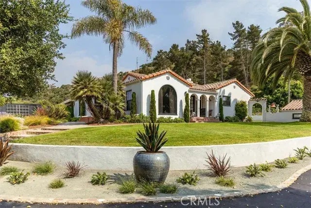 Nestled just minutes from the village of Arroyo Grande, this exceptional property offers the style of yesteryear alongside modern-day conveniences. This property, situated just minutes from the charming village of Arroyo Grande, masterfully blends vintage Spanish-inspired elegance with modern comforts. As you approach the home, you'll be greeted by impeccably manicured lawns and vibrant flowers leading you to the inviting front entry. The main hallway distinguishes living areas and bedrooms. The living room has recently been refurbished with new flooring. The new windows allow an abundance of natural light. Throughout the home the walls have been expertly finished with 2 thick plaster. Harkening to the craftsmanship from a bygone era. Moving into the dining area, your attention is drawn to the beautiful chandelier, masterful wood finishes. and prevailing craftsmanship. The kitchen, with its recessed lighting and new windows, features stone countertops and custom cabinetry, complemented by new appliances, an undermounted sink, and modern fixtures. A cozy breakfast nook adjacent to the kitchen invites you to enjoy your morning coffee in a warm and welcoming setting. The bedroom wing is comprised of a spacious primary suite with new flooring & overhead fan. The ensuite bathroom features a tile tub and shower enclosure. Here the walk-in closet is outfitted with custom cabinetry. The second bedroom has also been upgraded with new windows and floor coverings. Just beyond is the office/3rd bedroom. This room has access to the exterior that leads to a private area with hot tub. On