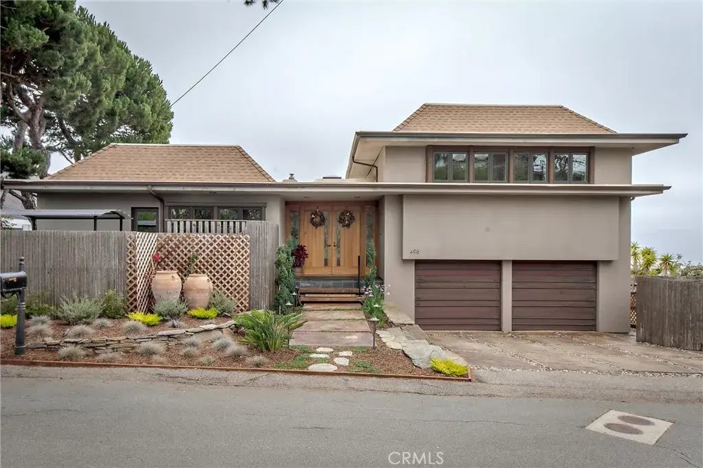 Seeking a dramatic residence with natural privacy and stunning whitewater coastal views? OR an income generating Licensed Vacation Rental? The dramatic and private setting of this property serves up sweeping coastal vistas that capture rocky coves, the rolling terrain of the Fiscalini Ranch Preserve and nearby coastal hills. The unique multi-level design features 3 impressive en suites each on a separate level, a desirable layout for vacation rental or primary living. The interior is accented by detailed coffered ceilings, designer lighting, multiple skylights, premium flooring and exotic finish materials. An impressive walkway leads past lush landscaping and copper clad garage doors to a striking entry of fine wood inset. A bright foyer overlooks the spacious dining area and ranch views beyond. Near the foyer, a large primary suite includes a privacy garden and patio and an impressive bath with abundant glass block, double vanities in stone counters, separate tub and shower plus a grand closet area that includes a rotating clothing rack. Down 2 steps from the foyer, a large family room with fireplace offers more coastal views plus exterior stairs to a lower deck and hot tub. The kitchen and living level are two steps up from the dining room and provide its own ocean views. The kitchen boasts an array of professional quality appliances, copious storage and a unique island with counters of stone. The top level contains a big guest suite with sitting and office areas, plus additional ocean views. The lower level guest suite with private entry has 3/4 bath and access to the ou