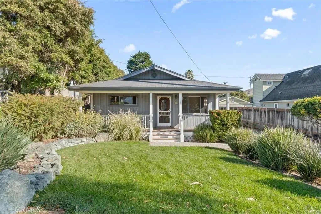 This 4-bedroom expanded classic Cayucos bungalow on a large piece of property is tucked only a two minute walk from downtown and three minutes from the beach. The sunny, large front porch faces a grassy, landscaped front yard where you can listen to birds. In the front rooms at night, you can hear seals barking. The driveway is lined with mature, fragrant rose bushes. The back yard has plenty of room for -- whatever: an ADU, a large outdoor play and living area. At approximately 2,016 square feet, the well-maintained home is spacious. The master suite has a walk-in closet to die for! The kitchen, though slightly dated, is bright and large. The house is ready to live in but also has the "bones" to support updating and remodeling. Park your car and walk everywhere in this centrally-located yet private Cayucos home