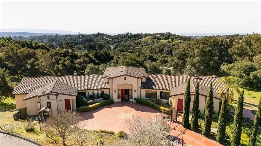 Mediterranean home features 5,628sq with 4 bed, 6.5 bath and situated on 5 acres in the gated Montecito Ridge Estates. Conveniently located between San Luis Obispo and the Village of Arroyo Grande. Each bedroom had their own bathroom and ample closet space. Large primary suite includes sitting room, fireplace and oversized bathroom with jetted tub. Spacious kitchen has large prep area and pantry. Gorgeous views from the expansive wrap-around deck. Leased Solar system. Two finished lower level spaces totaling over +/-2,000 additional sq (not included in stated square footage) are perfect for Junior ADU, game/media rooms, wine cellar, offices or library. 4-car garage with an additional 2 car/workshop on backside of home.