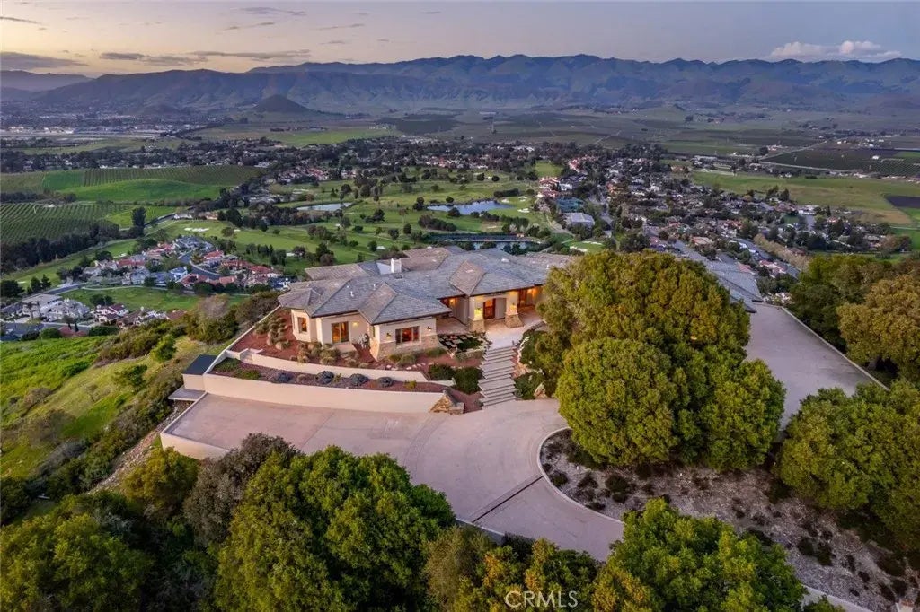 Quails Haven Hill Panoramic Estate with Timeless Design Enjoy commanding 360-degree views from this extraordinary 10-acre estate sitting majestically above the Edna Valley with vistas of verdant vineyards, championship golf course, rolling hills, and the distant Pacific Ocean. The residence, a paragon of Greene & Greene design, spans 6,971 square feet, with six luxurious bedrooms and six sophisticated bathrooms. Inside, custom walnut doors, cabinets, and trim harmonize with marble and sculpted walnut floors. Exterior design elements draw inspiration from the Japanese castle Ishigaki, seamlessly blending artistry with function to create a serene retreat where luxury meets the timeless beauty of Central California. The dramatic entry takes advantage of soaring ceilings and unsurpassed views to welcome you into the expertly designed interior, with superb craftsmanship showcased at every turn. The gourmet kitchen, with premium SubZero, Bluestar, Miele, and Bosch appliances, will inspire any chef. Luxury abounds in the spacious primary suite with a soaking tub, marble shower with 11 shower heads, and a six-person Finlandia sauna. The custom theater, with its Art Deco design, custom-milled walnut paneling, and hand-painted ceiling mural of the galaxy, provides an immersive cinematic experience. Your guests will revel in the attached guest suite offering two bedrooms, a full kitchen, and a great room. The attached 4-car garage is outfitted with 2 Tesla Wall batteries. Relax in the Zen-like atmosphere while savoring the surrounding oak-studded estate with the vanishing edge pool a