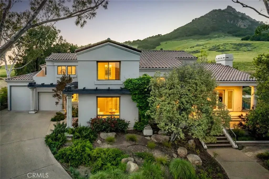 Nestled on a unique, private 3-acre parcel in San Luis Obispo, with Bishops Peak as its striking backdrop, this 4,200 sq ft Mediterranean-inspired home is a perfect blend of space and style. With 4 bedrooms, a bonus room, and 4.5 baths, it blends indoor-outdoor living just minutes from downtowns vibrant scene. Unobstructed views from most windows bring nature indoors, yet each space feels secluded. The sellers crafted a grand open kitchen, family room, and informal dining area, ideal for gatherings, with energy-efficient appliances and an oversized island with Plato cabinets and a single-piece quartz counter. A two-sided gas fireplace connects this great room; a wood-burning fireplace anchors the formal living and dining areas. Select windows and doors boast low-E upgrades. The striking spiral staircase leads upstairs to four bedrooms: the primary suite offers a spacious balcony showcasing commanding views of the open-space hillsideperfect for morning coffee, afternoon reading, or evening wine. Its bathroom maximizes these vistas with a full wall of windows, dual showerheads, a glass-enclosed shower, a jetted tub, and a large walk-in closet. Two bedrooms share a Jack-and-Jill bath, both with stunning hillside views and one with a Juliette balcony; a third has an en suite bath and eastern views of the foothills. Downstairs, a bonus room with closets, an en suite bath, and French doors to the outside doubles as an office, playroom, or guest suite. A Master Gardener-designed, low-maintenance yard with native plants, Meyer lemon trees, a koi pond, mature trees, and a seasonal c
