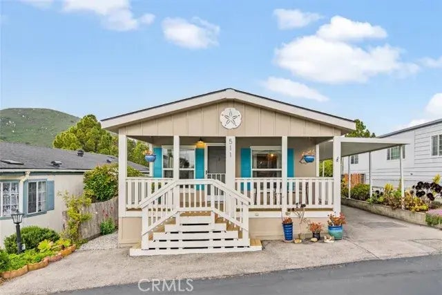Welcome to 511 Pinon Space 42, a beautifully maintained 3-bedroom, 2-bath Cape Cod-style residence located in the sought-after Bay Pines Mobile Home Park, an upscale 55+ community in the heart of Morro Bay. This high-quality Champion Home Builders Infiniti II model is known for its exceptional craftsmanship and thoughtful design, offering comfort, style, and functionality. Built in 2007 and lovingly cared for, this home boasts a spacious front porch where you can unwind while enjoying peaceful views of the nearby peaks. Inside, youll find a light-filled living room with large windows, a cozy dining area just off the kitchen, and a smart layout that promotes easy everyday living. The main living areas feature durable laminate flooring, while the bedrooms are finished with plush carpet for added warmth and comfort. With ceiling fans in every room, central heating, and high-speed internet readiness, youll enjoy comfort and connectivity year-round. All appliancesincluding washer, dryer, and refrigeratorare included in the sale, and the exterior was freshly painted in 2022, boosting curb appeal and giving the home a fresh, clean look. Beyond the home itself, Morro Bay offers an ideal coastal lifestyle with access to endless recreational amenities just minutes away. Enjoy scenic hiking trails, kayak the bay, or play a round of golf at one of several nearby courses. Morro Bays charming downtown is just around the corner, offering an eclectic mix of boutiques, art galleries, and local shops perfect for weekend strolls. Foodies will love the abundance of local restaurants serving up