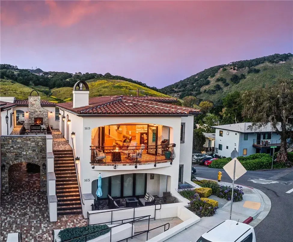 Experience the epitome of beachside living in this stunning single-level condominium, perfectly situated just steps from the sandy shores of Avila Beach. This sprawling residence offers 2 spacious bedrooms and 2 luxurious bathrooms, seamlessly blending contemporary design with coastal charm. Upon entering, you're greeted by an open concept living area adorned with walnut flooring, high ceilings, and recessed lighting. The living room features a decorative stone-trimmed fireplace flanked by built-in cabinets, creating a warm and inviting atmosphere. Tri-folding doors open to a large, covered deck, offering breathtaking ocean views and the ultimate indoor/outdoor living experience. The gourmet kitchen is a chef's dream, equipped with professional-grade Thermador appliances, a gas cooktop, new dishwasher, and a farmhouse Kohler sink. Bright shaker cabinets, quartz countertops, and a spacious breakfast bar complete this culinary haven. The primary ensuite bedroom boasts two closets and French doors leading to a private deck with serene views of the coastal hillsides. The ensuite bathroom features dual sinks, a vanity area, and high-end finishes. The secondary bedroom is equally impressive, offering ample closet space and stunning views. A well-appointed secondary bathroom showcases impeccable beach-themed design. Additional amenities include a large laundry room with a utility sink, countertop space, and abundant cabinetry. The laundry has a new stacked washer! The property also offers two parking spaces in a gated underground garage, a 10'x15'x10' private storage room, and two