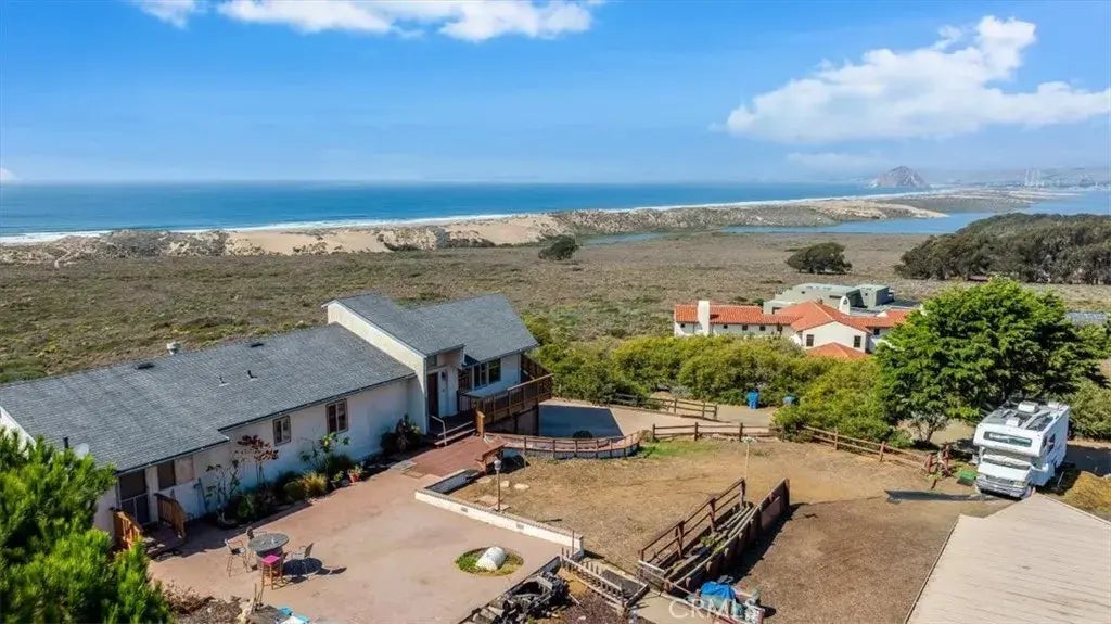 Perched above the coastline beside Montana de Oro State Park, this idyllic piece of paradise offers sweeping 270-degree views of the Pacific Ocean, Morro Rock, and the back bay, all framed by hundreds of acres of preserved natural land. Wildlife abounds here, from migrating whales and soaring birds to coyotes and more, creating a rare connection to nature in every direction. From its hillside perch, the home enjoys ever-changing views within an unchangeable vistaone of the Central Coasts most treasured panoramas. Golden light washes the landscape by day, while celebrated daily sunsets paint the horizon with unforgettable color, ensuring that no two evenings are ever alike. The nearly two-acre coastal ranchette is an equestrians delight, featuring onsite horse facilities and direct access to endless outdoor adventures. Ride for miles along deserted sandy beaches and explore the extensive trails that wind through the parks breathtaking coastal bluffs, dunes, and rolling hillsall just beyond your fenceline. The rustic yet spacious home is designed for versatility, ideal for sharing or multi-generational living with separate entrances to two private guest suites on the lower level. Inside, high vaulted ceilings and expansive picture windows bring the outdoors in, while custom details showcase unique craftsmanshipstone countertops with embedded quartz, hand-painted ceramic knobs, and cabinetry crafted by a master boat builder. Enjoy a glass-walled soaking tub with ocean views, a large dream workshop for creative projects, the convenience of owned solar, and the enhanced safety o