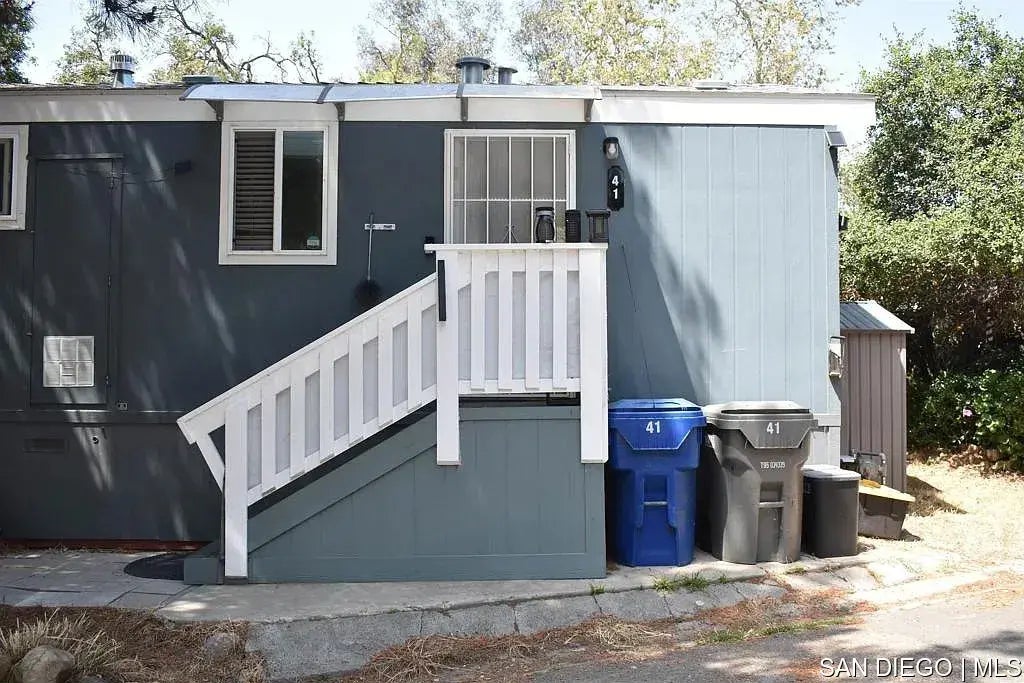 Welcome to Flinn Springs Mobile Home all ages park in El Cajon. This 1 bedroom, 1 bathroom manufactured home features living area and functional kitchen. Has front and back entrances and a pleasant creek that runs through the property. Space rent 840.00 month