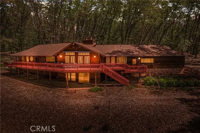 This stunning, custom-built 3,038 sqft. home is perfectly nestled on four scenic acres, offering a perfect blend of luxury and nature. Constructed with a mix of solid wood, quartz, brick, and Nantucket-stained glass, this unique property boasts three bedrooms, with a possible fourth, and three bathrooms, including an expansive bonus room. Every inch of this home reflects meticulous craftsmanship and pride of ownership. The serene landscape features a fully fenced 1- acre garden and orchard, complete with various fruit trees and an irrigation system. Enjoy breathtaking view from the wraparound deck, equipped with a convenient roll out shade for added comfort. Safety and security are top priorities with a strategically placed irrigation system that doubles as a fire barrier. This home is also equipped with a 24W Generac backup generator, ensuring you'll never be without power. Enjoy low energy bills year-round with a home that maintains a comfortable 64 degrees in the summer and features a push-air system from the fireplace in the winter, reducing the need for HVAC use. Experience the ultimate in privacy and tranquility at your own personal retreat.