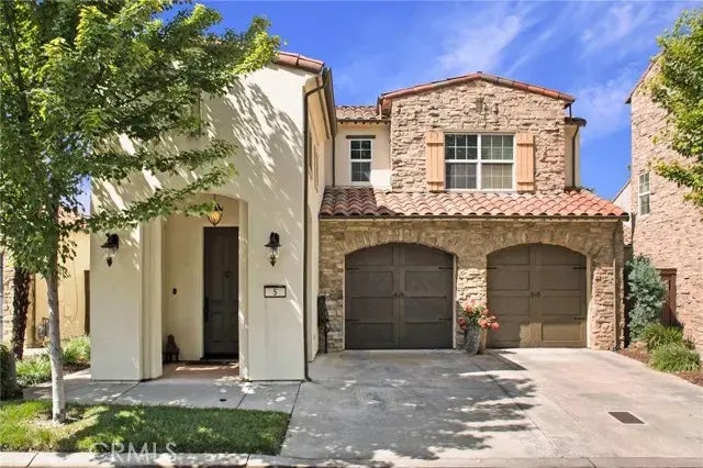 Gorgeous Mediterranean style home is located in the highly sought after exclusive Sorrento Neighborhood. Featuring 3 bedrooms and 3 FULL bathrooms. Very desirable floor plan with one downstairs bedroom. Upstairs master suite Bed and Bath with separate shower and tub, and custom walk-in closet. Gourmet kitchen, open to the living room includes granite counters, stainless steel appliances with 5 burner gas range, a built-in wine refrigerator, dimmable LED lighting and a functional breakfast bar. High vaulted ceilings and abundant windows bring wonderful light into the home. Sliding door leads out to the private patio area with gas and electric; perfect for morning coffee or afternoon BBQs. Formal, yet open dining room allows plenty of room for large gatherings. Upgraded features include Laminate floors throughout most of the downstairs, newer tankless water heater, surround sound speakers in living room, four ceiling fans and granite counters in all bathrooms. Charming common area creates a true feeling of neighborhood. Such a great opportunity!