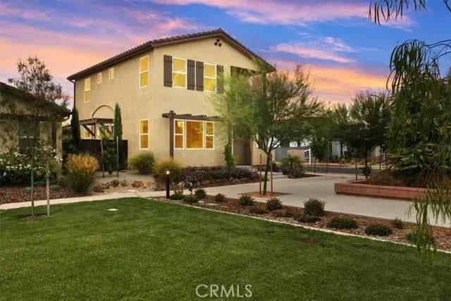 Welcome to your dream home! This stunning Spanish-style, two-story residence boasts 1,560 square feet of beautifully designed living space. Featuring three bedrooms and two and a half baths, this home offers comfort and functionality. The 1st floor is an open floorplan with sliding doors out to the patio from the living area, kitchen and island, built in desk, large storage room under the stairs, a utility room with laundry, storage and a half bathroom. All bedrooms are located upstairs ensuring privacy and tranquility. The primary bedroom opens to a charming covered patio balcony, perfect for enjoying your morning coffee or evening sunset views. The fully finished side yard is an outdoor oasis with a patio, pebble accents, and a garden bed already plumbed for irrigation - ideal for the gardening enthusiast. The detached two-car garage, along with an additional private uncovered parking space, ensures plenty of room for vehicles and storage. Situated facing a lush, grassy landscaped courtyard maintained by the city, you'll enjoy serene views without the hassle of HOA fees. Built in 2022 by Pat Burns, this home combines modern amenities with timeless design. Nestled in the master-planned community of Meriam Park, you'll have everything you need within walking distance, including coffee shops, restaurants, live music and more. Discover the perfect blend of convenience and luxury in this exceptional property.