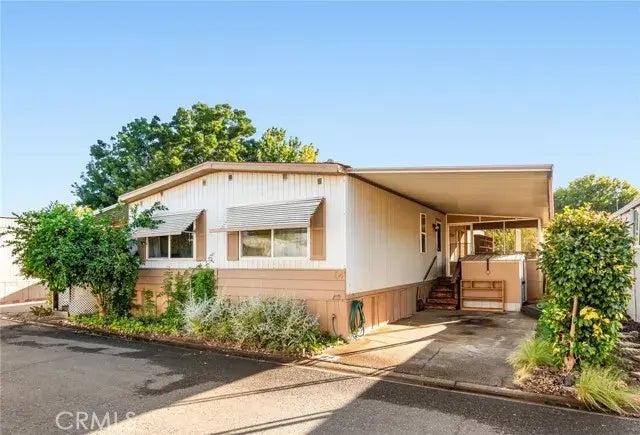 Welcome to this charming manufactured home, offering modern comfort and convenience in a serene setting. This well-maintained home features 3 bedrooms, 2 full bathrooms and a bonus room. With 1640 sq ft, there's so much space and potential for different layouts. Take advantage of the 2nd separate living space (the seller currently uses it as a primary bedroom) and roomy enclosed patio that would be lovely to relax in on a rainy day. The primary bedroom and bath is off the living room with a separate tub and shower, double sinks and walk-in closet. You will find a large kitchen with a bar area and lots of storage. Double pane windows keep you comfortable. Enjoy the tranquility of your private, fenced yard with a lovely patio area ideal for relaxing and entertaining. Additional highlights include a dedicated laundry room and tons of storage. You are just steps away from the heated pool. Located in one of Chico's most desired 55+ communities with easy access to local amenities. Dont miss out on this opportunity to make it yours!