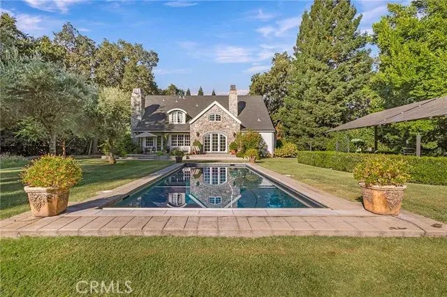 Transport yourself to a Mediterranean-inspired retreat in Chico with this breathtaking estate, nestled on just under an acre and a half near Bidwell Park. This 4-bedroom, 3 full bath, and 2 half bath home is a true feast for the senses, showcasing exquisite finishes and sun-soaked spaces that invite both relaxation and effortless entertaining. Step into the Tuscan-inspired gourmet kitchen, where culinary dreams come to life. With a Wolf stove, expansive granite countertops, and a generous island, every detail is designed for functionality and style. Whether enjoying a casual meal in the breakfast nook, hosting in the formal dining room, or savoring your morning espresso in the fireside nook, each moment feels truly special. The living room is a sunlit sanctuary, anchored by a stunning stone fireplace and offering serene views of the sparkling pool just beyondsetting the stage for seamless indoor-outdoor living. The primary suite on the first floor provides a peaceful retreat, complete with dual vanities, walk-in closets, and direct access to a cozy den adorned with timeless built-in shelves and its own fireplace. Upstairs, three spacious bedrooms, each with walk-in closets, ensure comfort and privacy for family or guests. Additionally, a bonus 13x22 roomcurrently used for storageawaits your creative touch and could easily transform into a home office, studio, or playroom. Outside, lush landscaping envelops the sparkling pool and patio, creating a private oasis perfect for relaxation or entertaining. The estate is complete with a 3-car garage and a circular driveway, adding