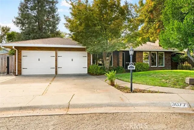 Check out this cute, custom, upgraded 70s style home! 3077 Paso Grande Ct. located at the end of a nice, quiet cul-de-sac in one of the great neighborhoods of North Chico is an entertainers dream. Whether you are enjoying a home cooked meal in the dining room, having a quick drink by the fire pit overlooking the pool, or relaxing by the wood burning stove in the living room with its tall open-beamed ceilings, you will feel right at home. Take a seat at the countertop bar and chat with the chef as they work their magic in this awesome kitchen complete with granite counter tops and stainless appliances including a smart refrigerator and 6-burner gas range. Walking down the hall, you cant help but notice the craftsman details at every turn including a built-in glass hutch and adorable wainscoting throughout. Next you will find two spacious bedrooms and a newly remodeled bathroom, thoughtfully designed with an open walk-in shower, luxurious soaker tub, and double vanity, creating a spa-like retreat for your everyday relaxation. Next enter the primary bedroom complete with an en-suite bathroom, His & Her closets and double vanities. As you step outside onto the covered patio you will enjoy your expansive, private, nearly half an acre yard. Beautifully landscaped and shaded by mature trees, it offers the perfect outdoor retreat. Enjoy cooking poolside in your outdoor kitchen, while your guests hop in the nice, heated pool. A double sized gate is perfect for your boat or toys and provides direct access to the detached shop which is plumbed with a built-in air compressor and has 22
